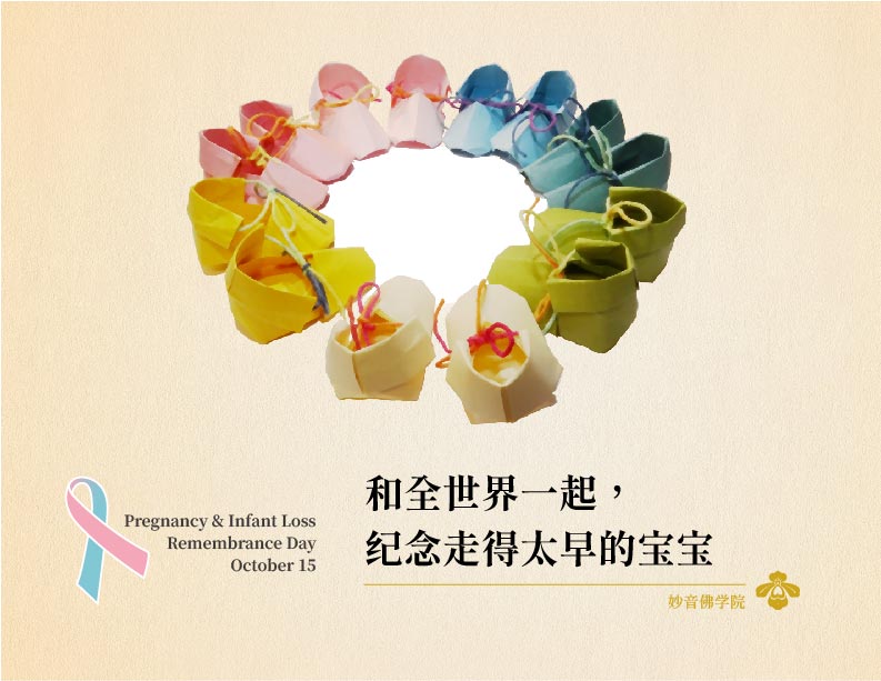 妙音佛学院为响应全球纪念活动,与那些难以言说的痛苦,将于十月法会为爸爸妈妈祈福,也为离开了的宝宝们殷重回向。祈愿能为这个世界带来温暖──送到每一颗心上。