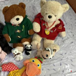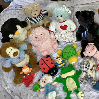 長大一點我學聰明了,只要和疼我的舅舅舅媽阿姨出門,我總會想方設法讓他們買一隻玩偶給我。而當我得意地抱著玩偶走進家門時,看在其他長輩的份上,媽媽也不曾說什麼。就這樣,1隻、2隻、10隻、15隻……,熊熊、兔子、狗狗、小豬、企鵝……各式各樣堆得我床頭櫃上一位難求。而我最喜歡做的就是,每天睡前將所有玩偶排在床邊和它們一一道晚安,再心滿意足地把玩偶一一擺回床頭櫃上,彷彿在告訴媽媽:「妳不買給我,我還是有辦法得到!」