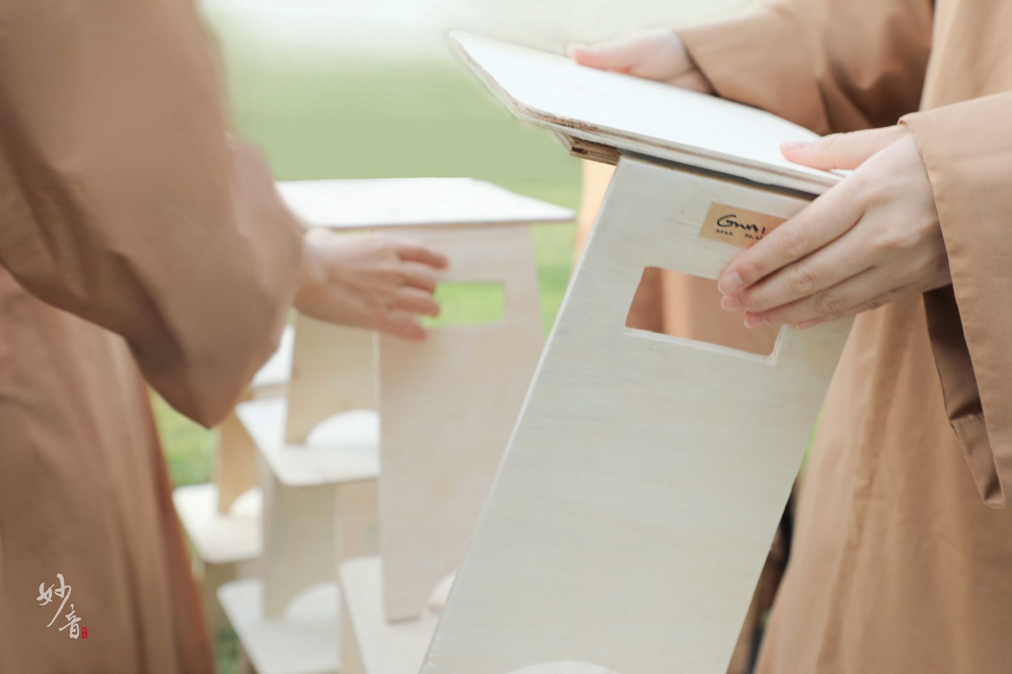 時間來到2022年,妙音北蓮兩棟僧寮開始建設,因為採購建材,手作小桌2.0的誕生契機來到。這次可以使用的材料,比上一批更為堅固,小桌口碑名聲好又有市場需求,這次開工匯集更多法師投入協助,真是善緣盛開呢!
