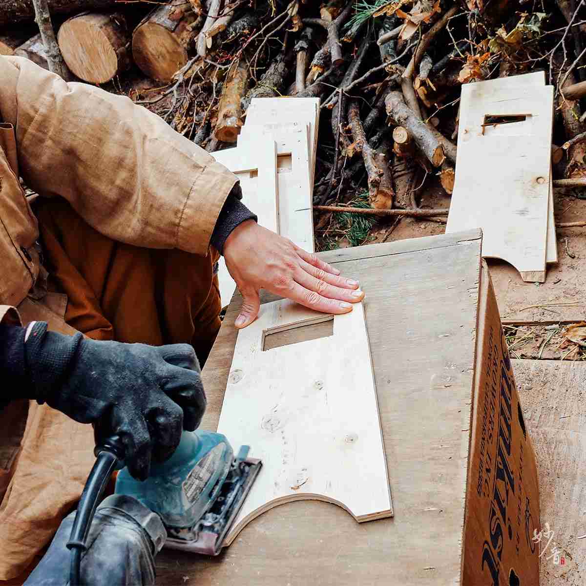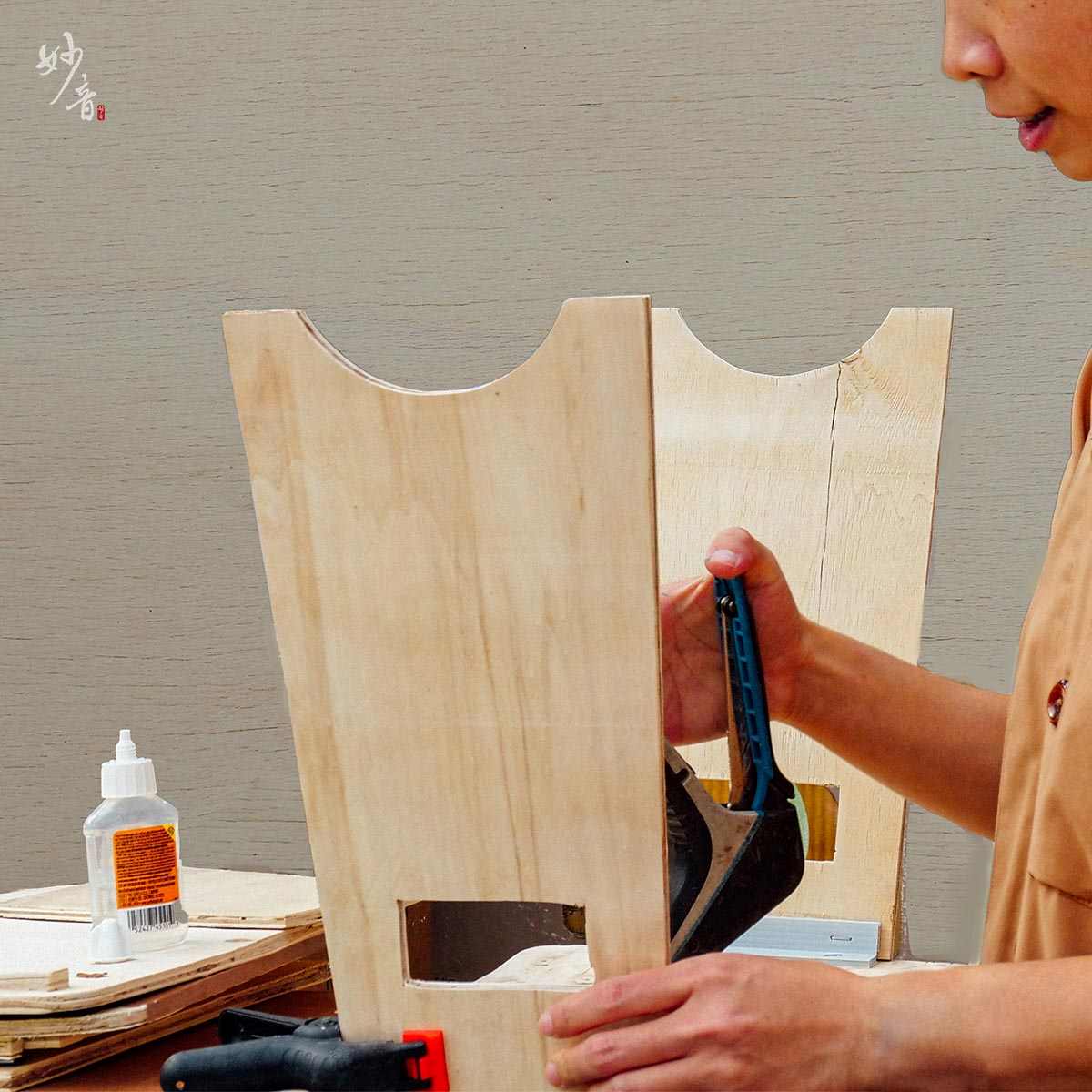 ——從挑板開始—— 包裝貨品用的夾板,整體品質不盡理想,因此須耐心挑出最平整、堅固的夾板作為桌腳,又因是主要受力面,若有縫隙,要加白膠補強。桌面板不用那麼堅固,只要把木板打磨光滑即可。至於發霉的板,就只能跟它說掰掰囉,畢竟身為法寶桌,出身清白是不可放鬆的標準。