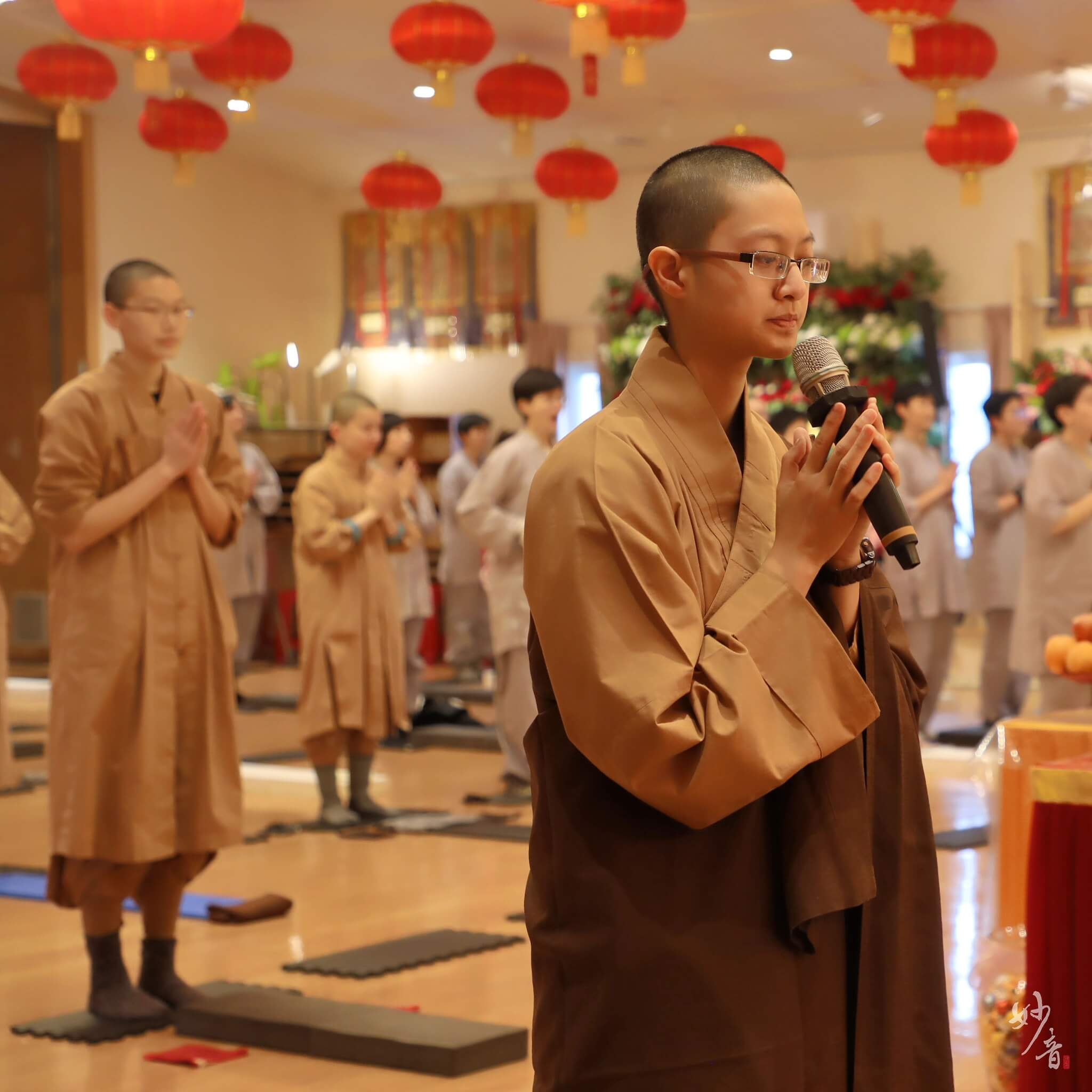 在僧團過的第一個新年,初一一大早,少了鞭炮和睡到飽,我心不甘情不願地走向大殿,心中想著,待會要去找個不起眼的位置,這樣拜累了還能坐在地板上當尊「不動如來」。等到佔好位子,看著眼前的拜墊、拜佛手套,法會雖然還沒開始,身體卻莫名感到疲勞至極。正當自己還沉浸在要如何熬過這一天的苦思中,只聽「哐」一聲,維那法師敲響大磬,伴隨著木魚、花鼓的輕快節奏,我的身體不知不覺隨著梵唄拜了下去……