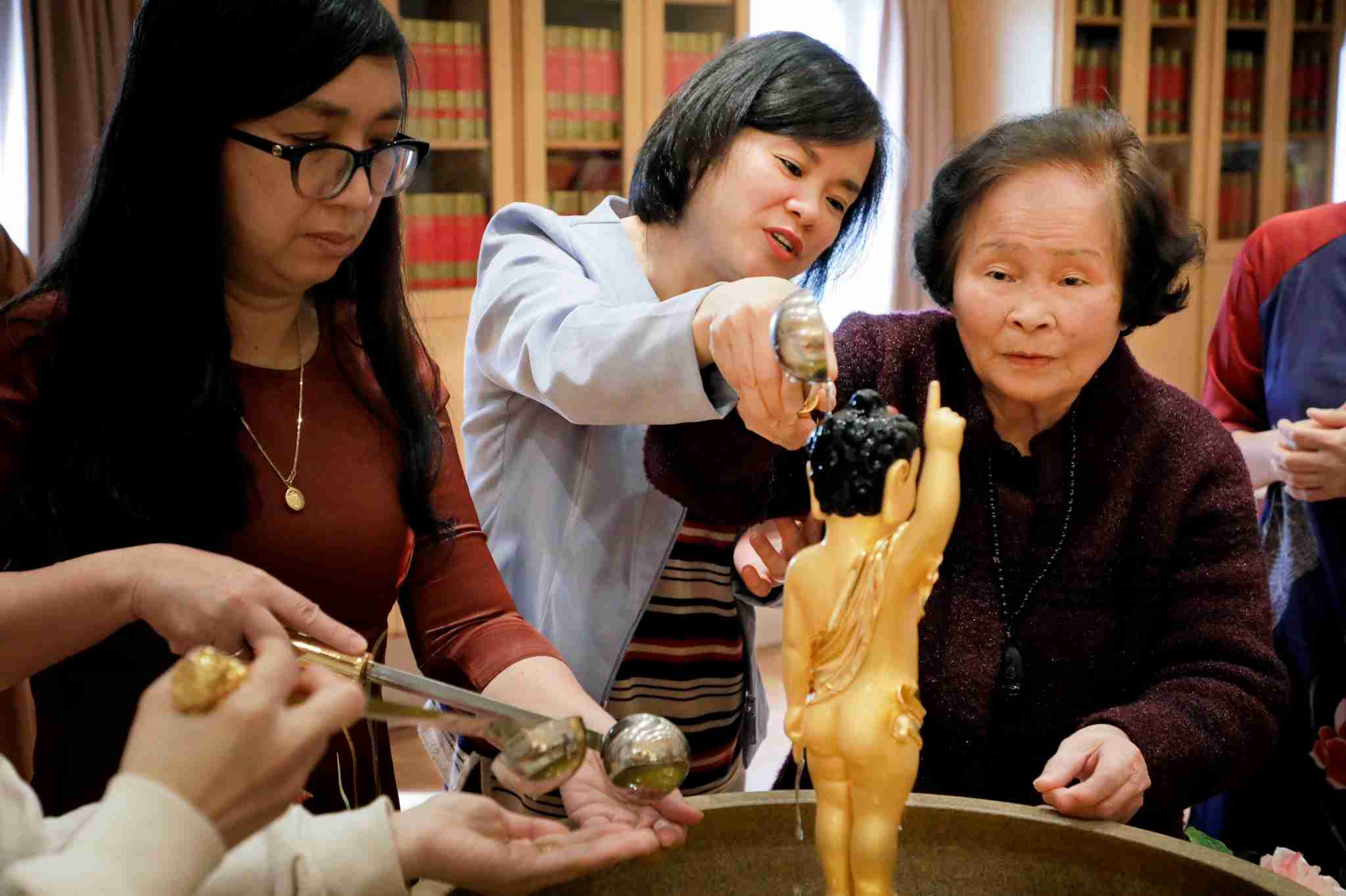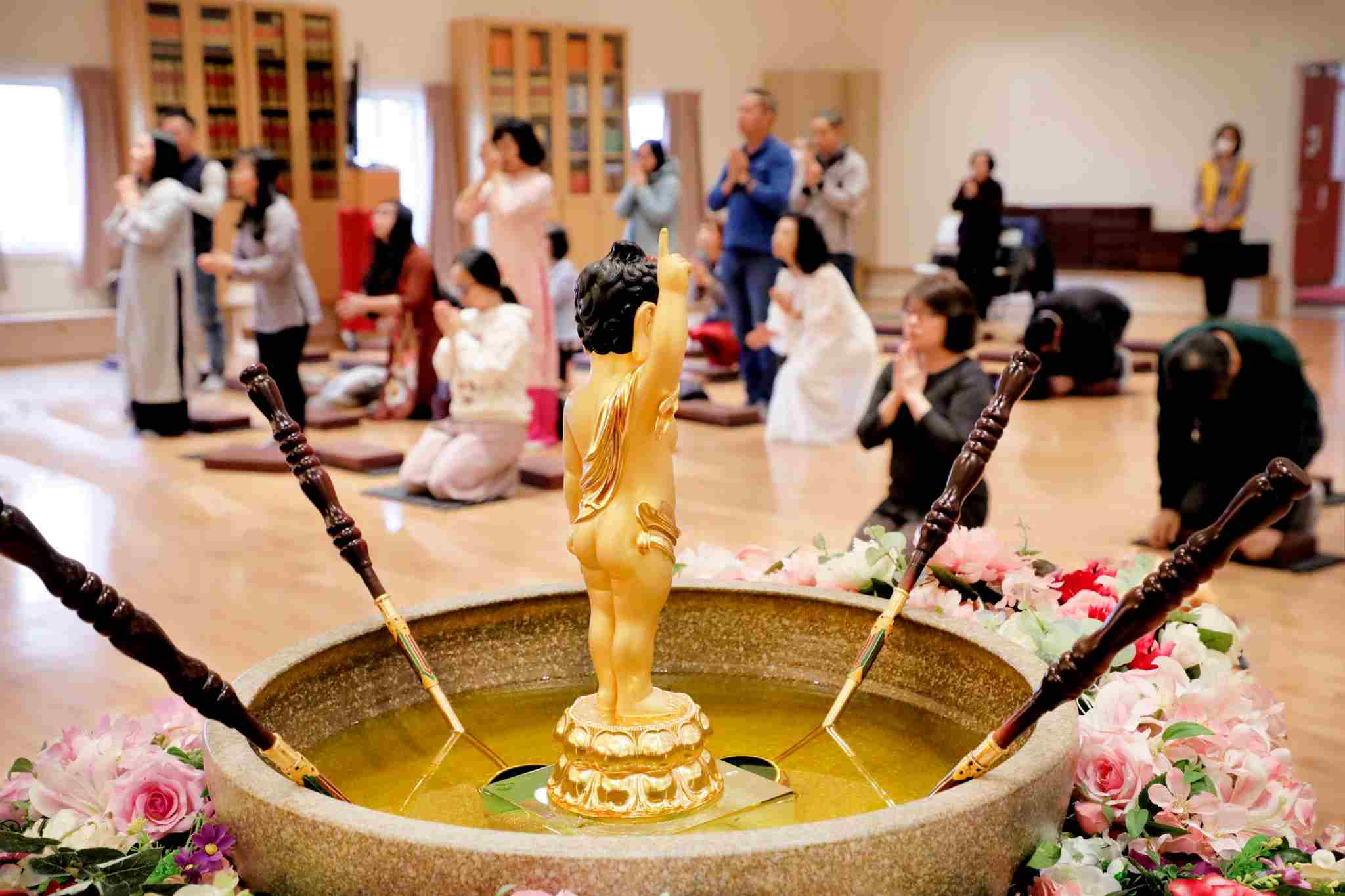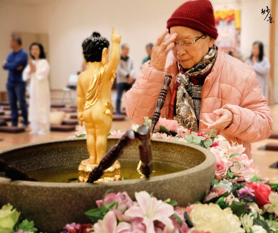從2019年開始,妙音佛學院就持續在佛誕日邀請越南居士來參加浴佛法會。看著他們攜家帶眷、一家從老到小來到寺院,每個人臉上那份安適與自在,好像寺院的意象,即使在離家萬里的異鄉,仍舊是一個撫慰人心、無限安寧的地方。